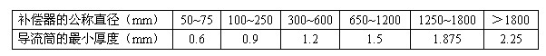 (5)如果距離補(bǔ)償器上游10倍管徑以?xún)?nèi)存在有閥門(mén)、三通、彎管等引起的湍流,則(3)中用于計(jì)算導(dǎo)流套厚度的流速V應(yīng)取做實(shí)際流速的4倍。