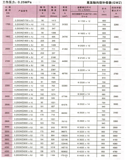 鋼鐵水泥行業(yè)高溫波紋補(bǔ)償器參數(shù)2